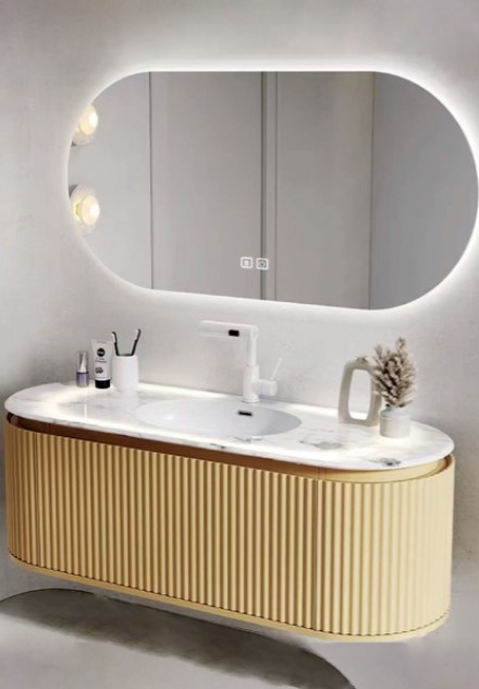 Με καθρέπτη led one touch button, με τρία χρώματα φωτός, (ψυχρό-μεσαίο-θερμό), dimmer (για ένταση φωτός) PVC.