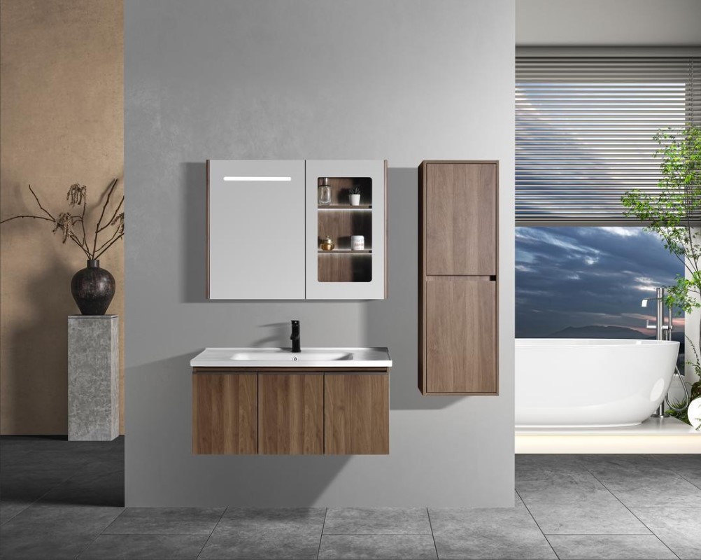 Το έπιπλο μπάνιου Lavare 100 καρυδί είναι ένα σετ κρεμαστού επίπλου, γνωστό για την ανθεκτικότητά του στην υγρασία λόγω της κατασκευής του από υλικό Carbon PC.