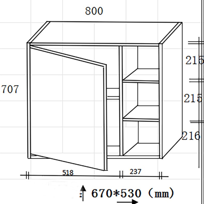 • Καθρέφτης 80x70cm: Ντουλάπι με δύο πόρτες, καθρέφτης αριστερά και 3 ράφια δεξιά